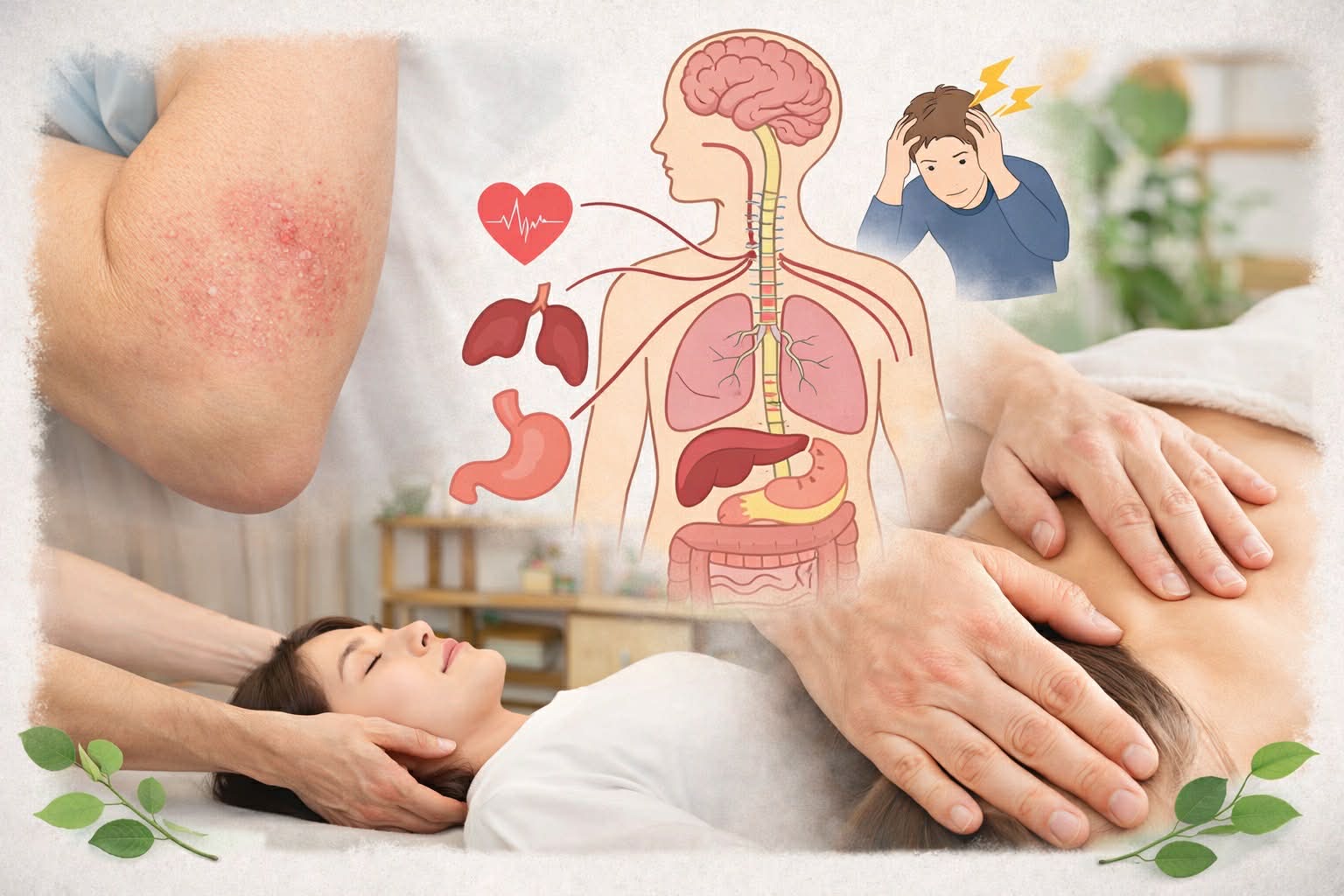 【アトピー性皮膚炎の意外な原因】 更新日:2026年4月1日 公開日:2026年3月22日 アトピー性皮膚炎 「アトピーがなかなか良くならない…」という方の多くは、実は“皮膚以外”に原因を抱えています。 特に見落とされがちなのが自律神経の乱れです。 ストレスや生活習慣の影響で自律神経が崩れると、血流や内臓の働きが低下し、結果とし […] 続きを読む